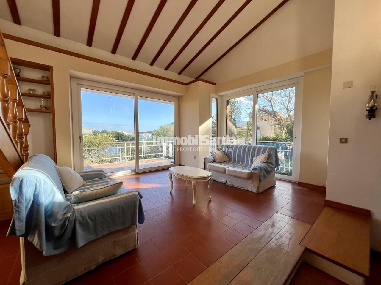The garden wraps around the house, with well-maintained paths, natural rocks, and Mediterranean plants. Multi-level terraces are perfect for outdoor meals, sunbathing, or enjoying sunset aperitifs. The Quinta Spiaggia is just steps away, with no roads or elevation to cross.