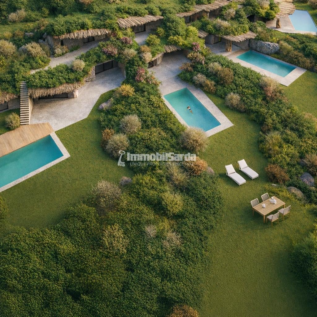 The property features five independent suites, each with its own private pool, designed to ensure maximum privacy, comfort and autonomy within an exceptional setting.