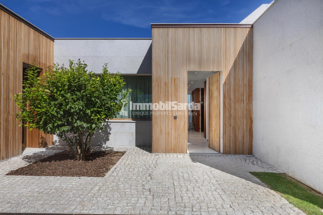 The natural materials such as the local Sardinian granite, wood finishes of the interiors and the outdoors guarantee visual and aesthetic continuity and a minimalistic design aesthetic. The use of wood and local stone blends with the other ecological element used, the glass, that provides excellent performance in terms of energy-saving. These highly ecological materials applied in the structure, in the ceilings, and also in the external and internal finishes give the property a strong eco-friendly value.